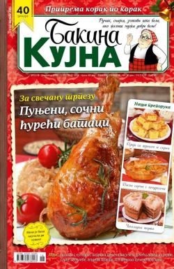 Bakina kujna je kulinarsko izdanje prilagođeno ljubiteljima dobrog zalogaja. Nudimo vam recepte za naša nacionalna jela, ali i one u kojima se poznati sastojci koriste na nove, neobične načine i u neočekivanim kombinacijama, olakšavamo vam pripremu gozbe za veći broj ljudi, a i savetujemo vas pri kupovini kućnih aparata.