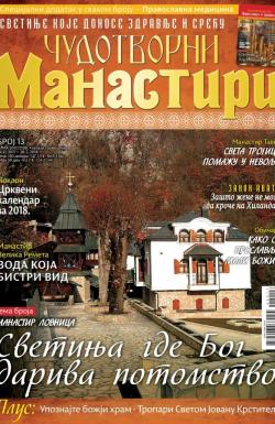 Časopis "Čudotvorni manastiri" predstavlja vodič kroz pravoslavne svetinje koje donose zdravlje i sreću. Pored istorijskih činjenica ovog kulturnog nasleđa, navedene su i ispovesti osoba koje su doživela čudesna isceljenja ili kojima se život promenio nabolje nakon posete svetinjama. Za svaki manastir dato je detaljno upustvo kako stići do njega, kao i geografske koordinate.